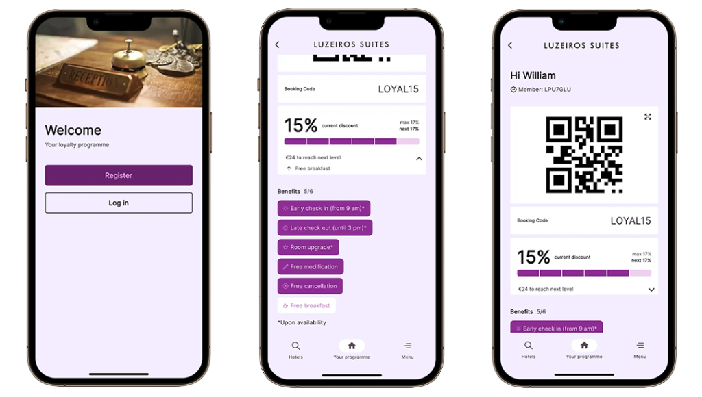 1. Inscreva-se a partir do nosso website no link https://luzeiroshoteis.loyaltel.com/start e descarregue gratuitamente a app TriplTrip (disponível para Android e iOS), no seu smartphone ou tablet, – a plataforma que gere o programa de fidelização – para ter acesso ao código correspondente ao seu nível de fidelização, que deverá introduzir aquando da reserva no site luzeirossuites.com;